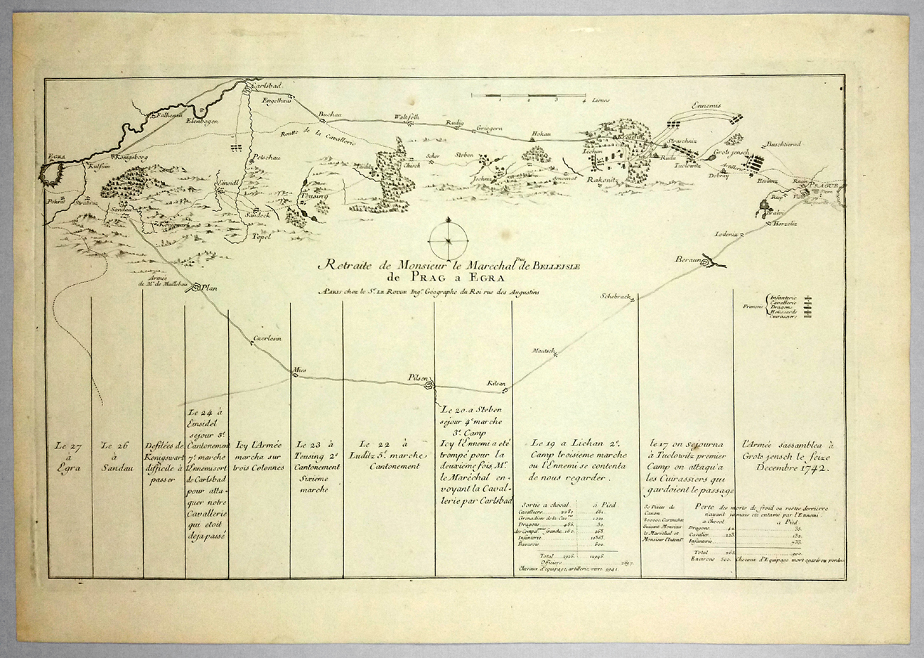 Praha - Cheb. Le Rouge, George Louis; pův. mědiryt 1750, plán stažení francouzských vojsk mezi Prahou a ChebemProdáno1 800 Kč/ ks