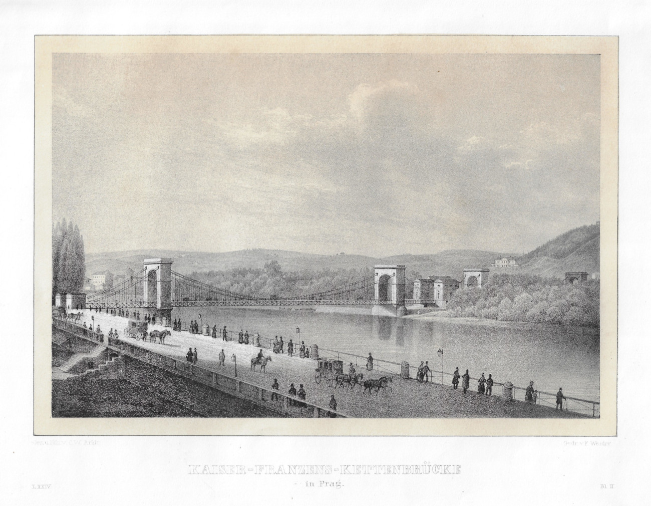 Praha – Řetězový most císaře Františka. „Kaiser-Franzens-Kettenbrücke in Prag.“.
