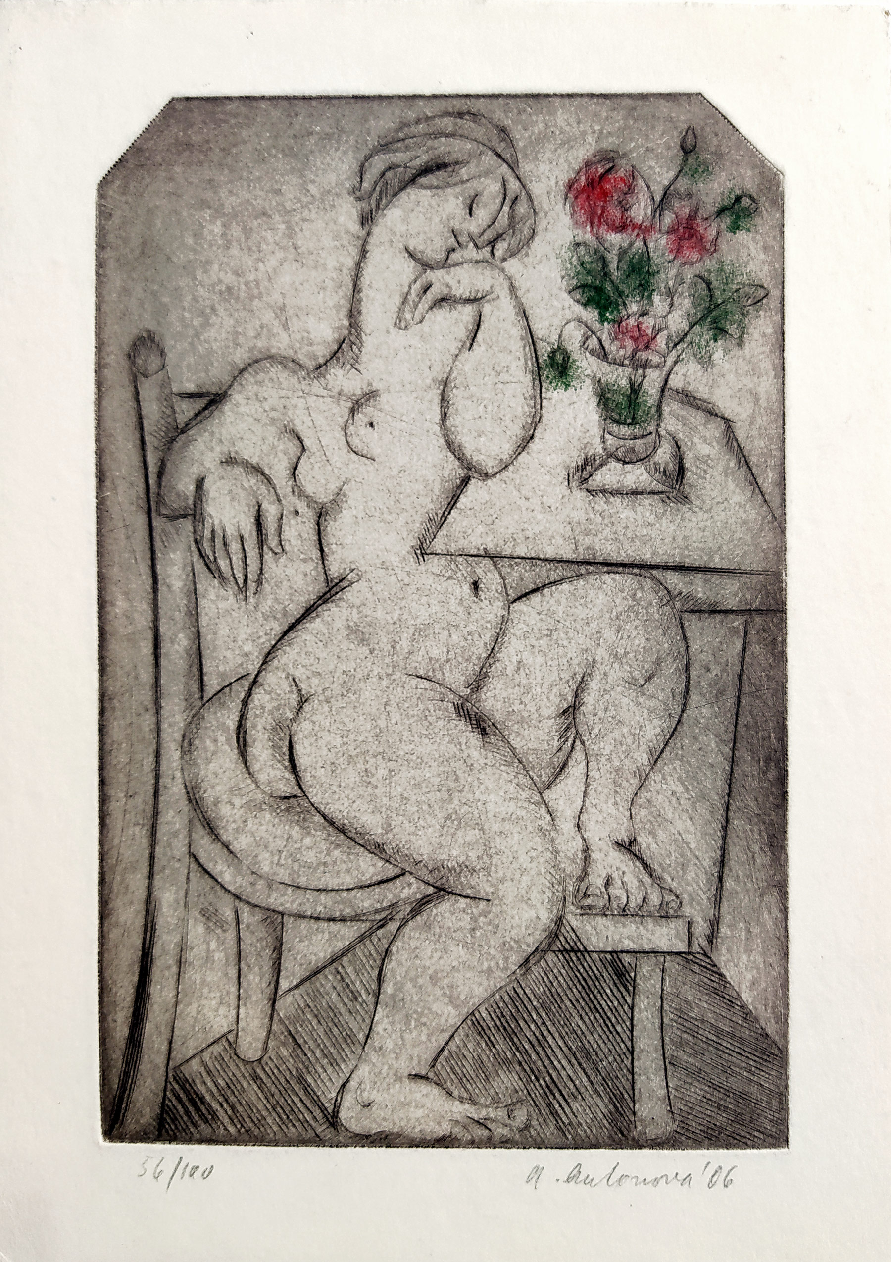 - Antonová Alena – Intimita, kolorovaná suchá jehla s barevným podtiskem, číslováno 56/100, 2006