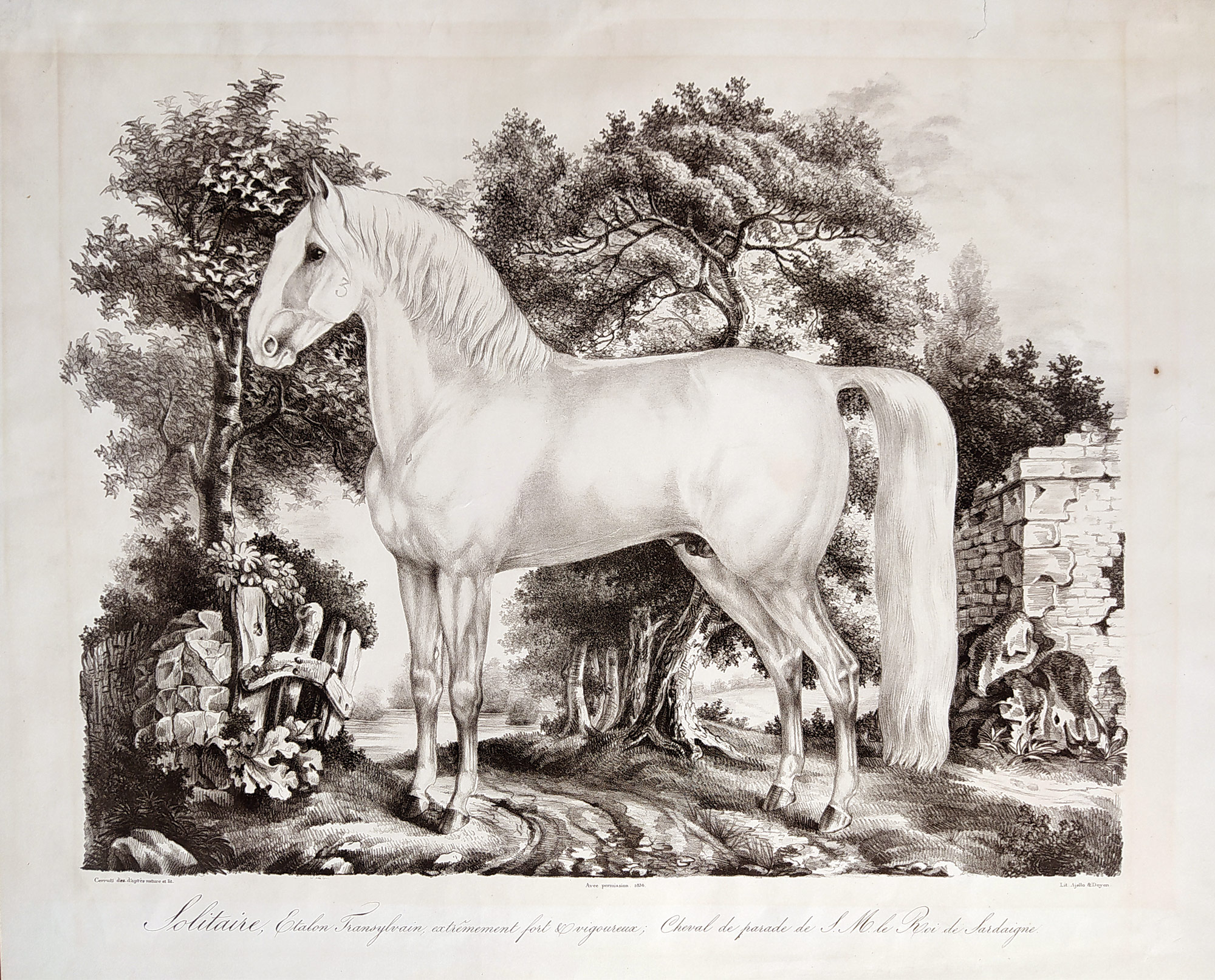 - Bauduc Felice Cerruti – Solitaire, ze série Koně Carla Alberta, původní litografie, 1836