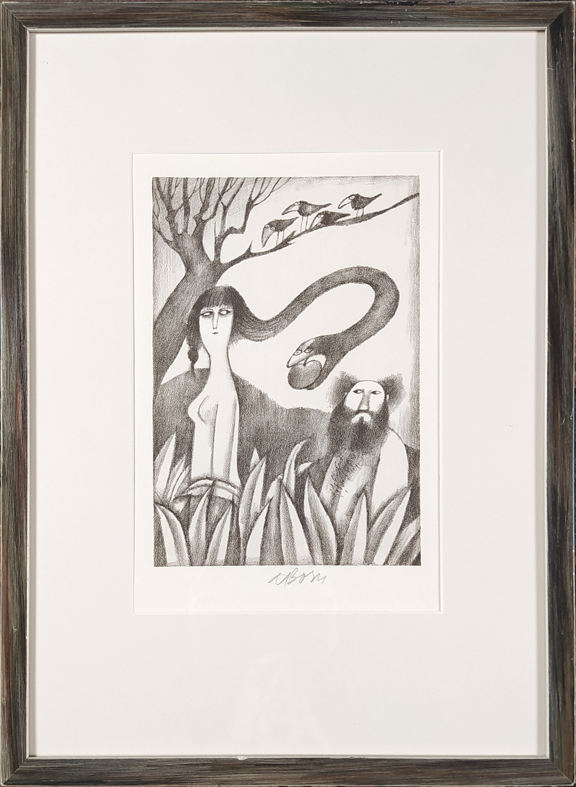 Born Adolf – Adam a Eva v rajské zahradě, původní litografie, nedatováno