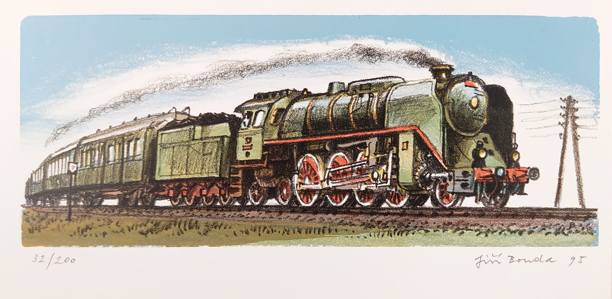 Bouda Jiří – Parní vlak, původní barevná litografie, č. 32/200, 1995