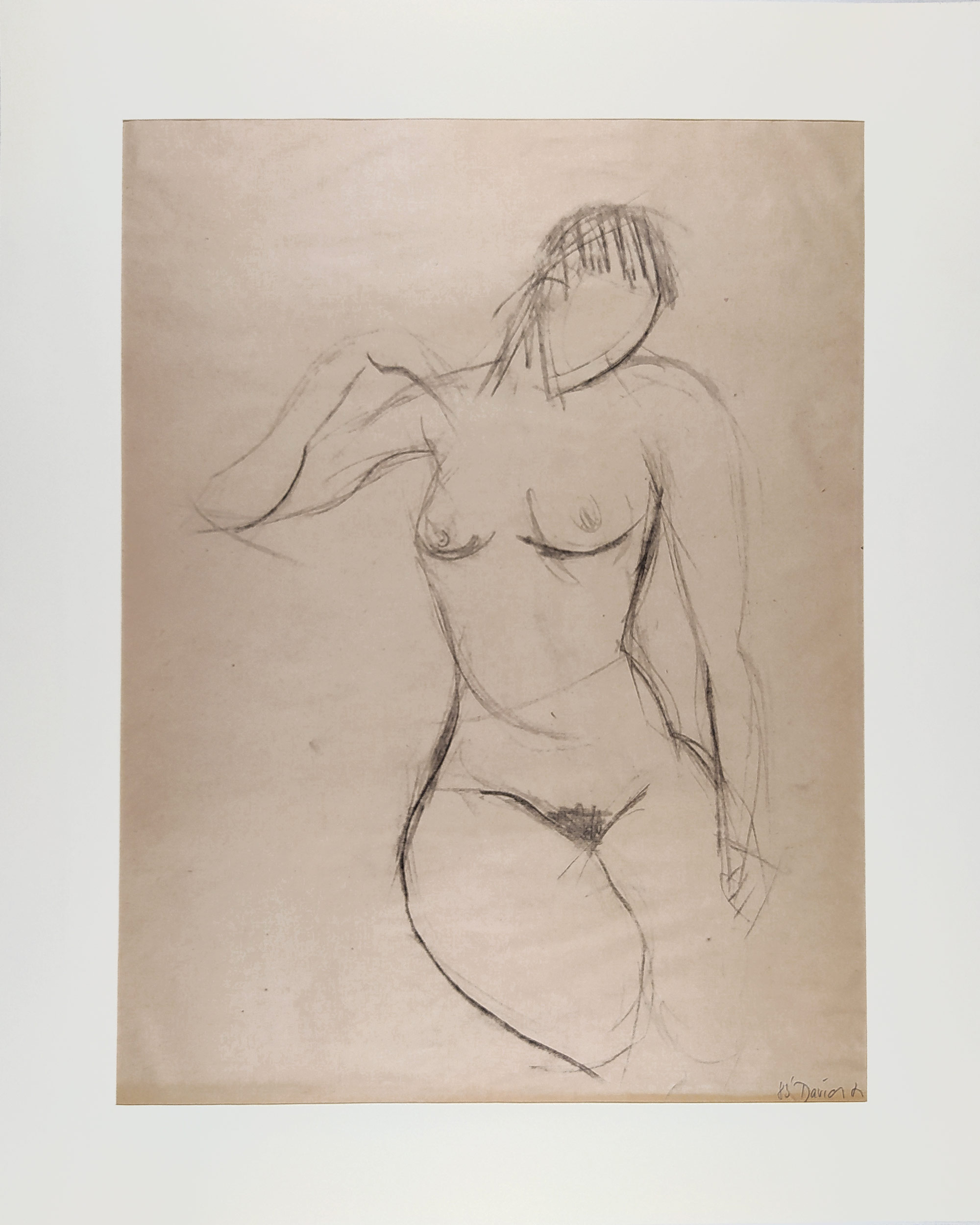 David Jiří – Zdena, sedící akt, kresba uhlem, 1983