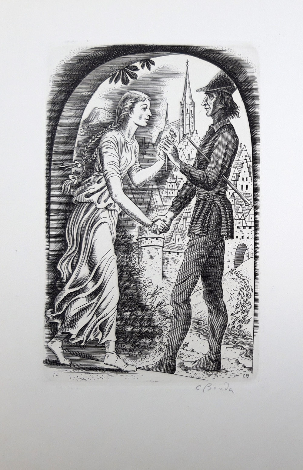 Bouda Cyril – Knižní ilustrace, původní mědirytina, 1950