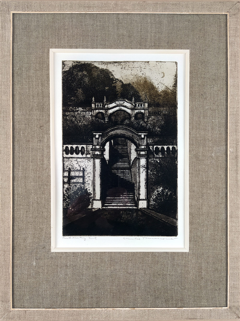 Tomanová Emilie – Vrtbovská zahrada, autorský tisk, lept, ca 1970.