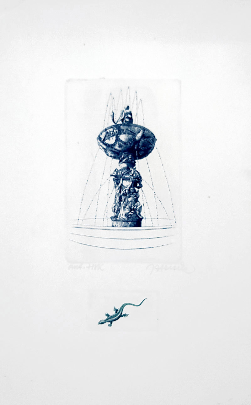 Herčík Josef – Zpívající fontána a remark, oceloryt, 1965.