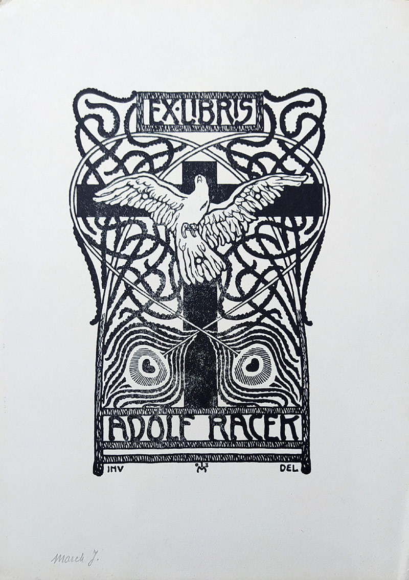 Marek, Josef Richard – Ex libris Adolf Racek, zinkografie, 1903.