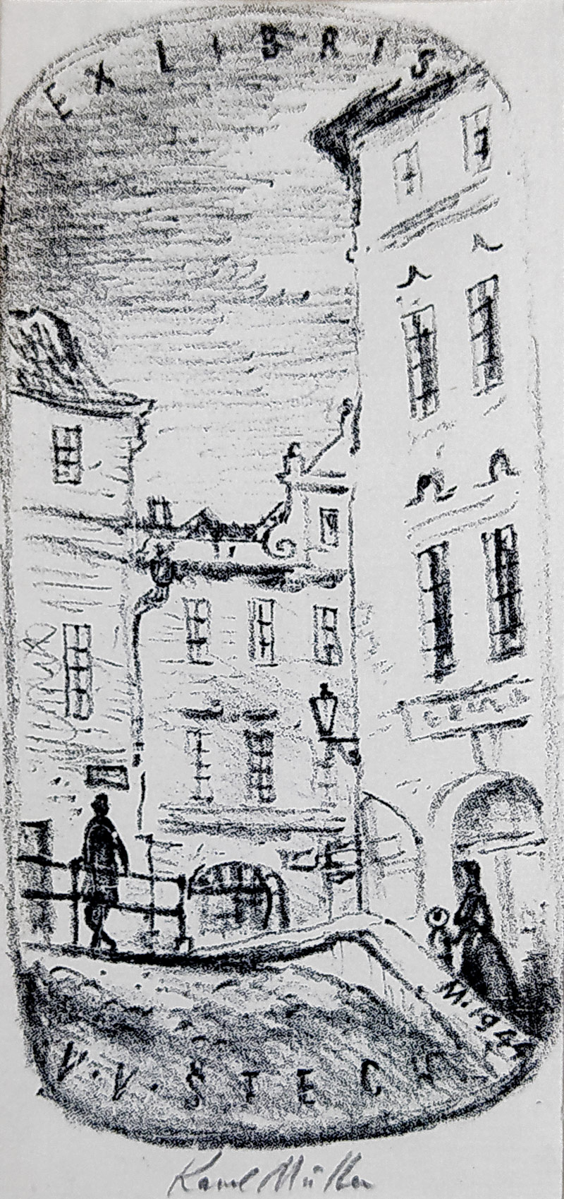 Müller Karel – Ex libris V. V. Štech, původní litografie, 1944.