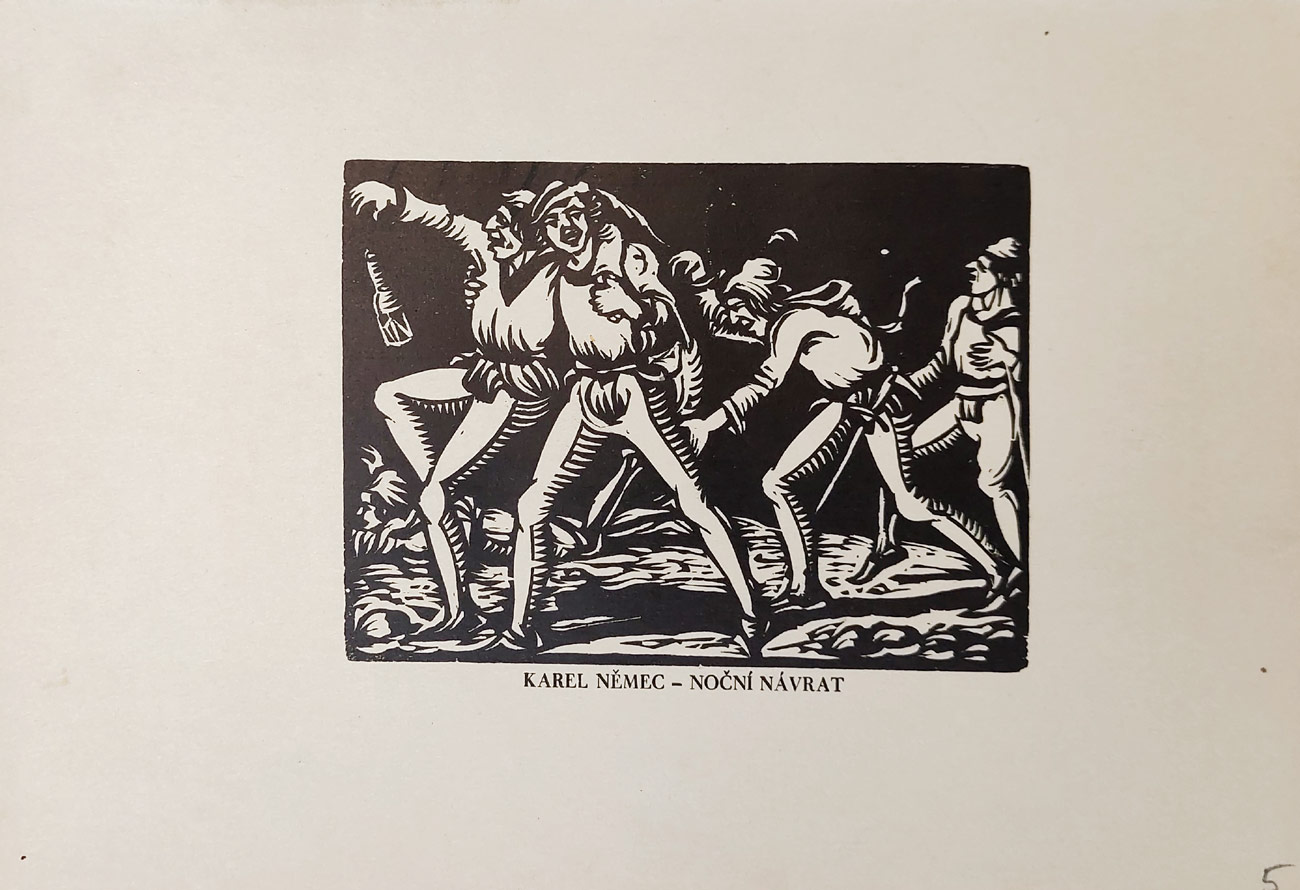 - Němec Karel – Noční návrat, dřevoryt, ca 1920