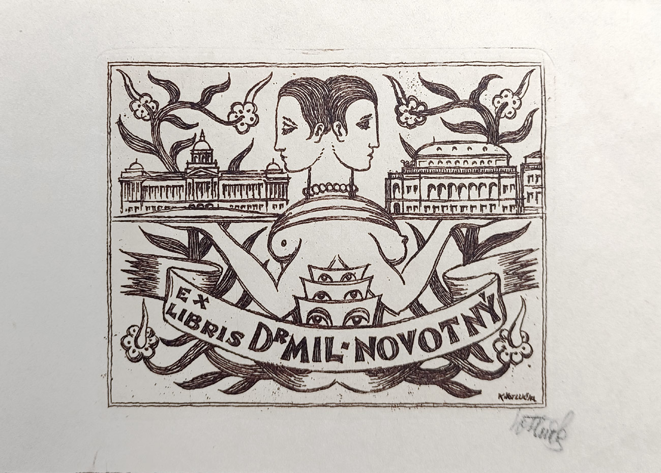 - Votlučka Karel – Ex libris Dr. Mil. Novotný, lept, ca 1930