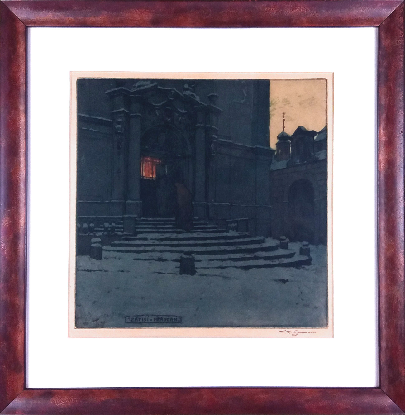 Šimon Tavík František – Zátiší z Hradčan, barevný lept, 1908, grafický list na prodej, pragensia