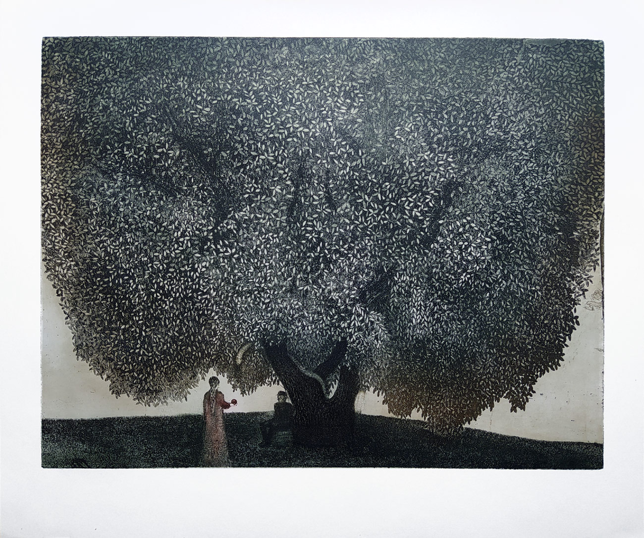 Tomanová Emilie – Strom Pokušení, barevný lept a suchá jehla, nedatováno.