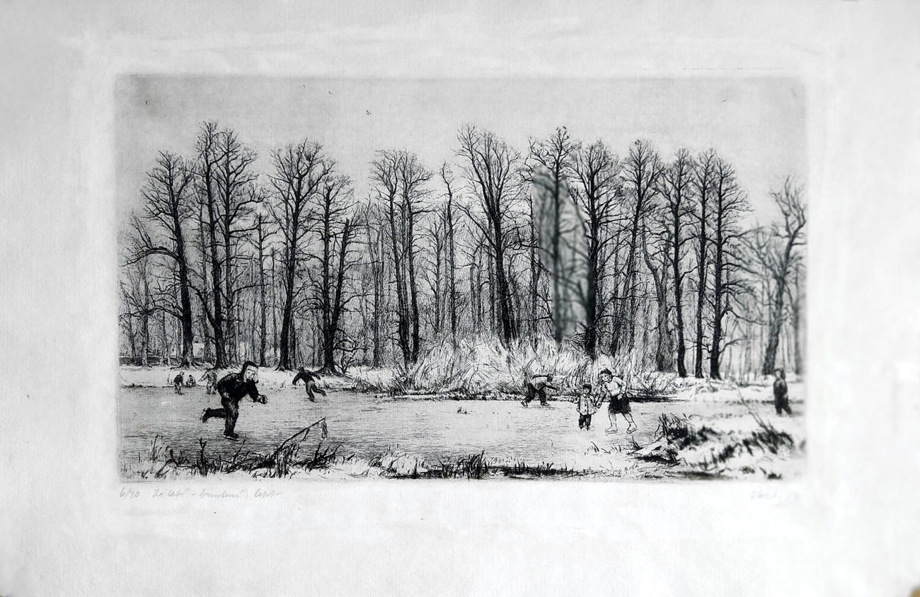 Dlouhý Václav – Zálabí, bruslení, původní lept, 1952