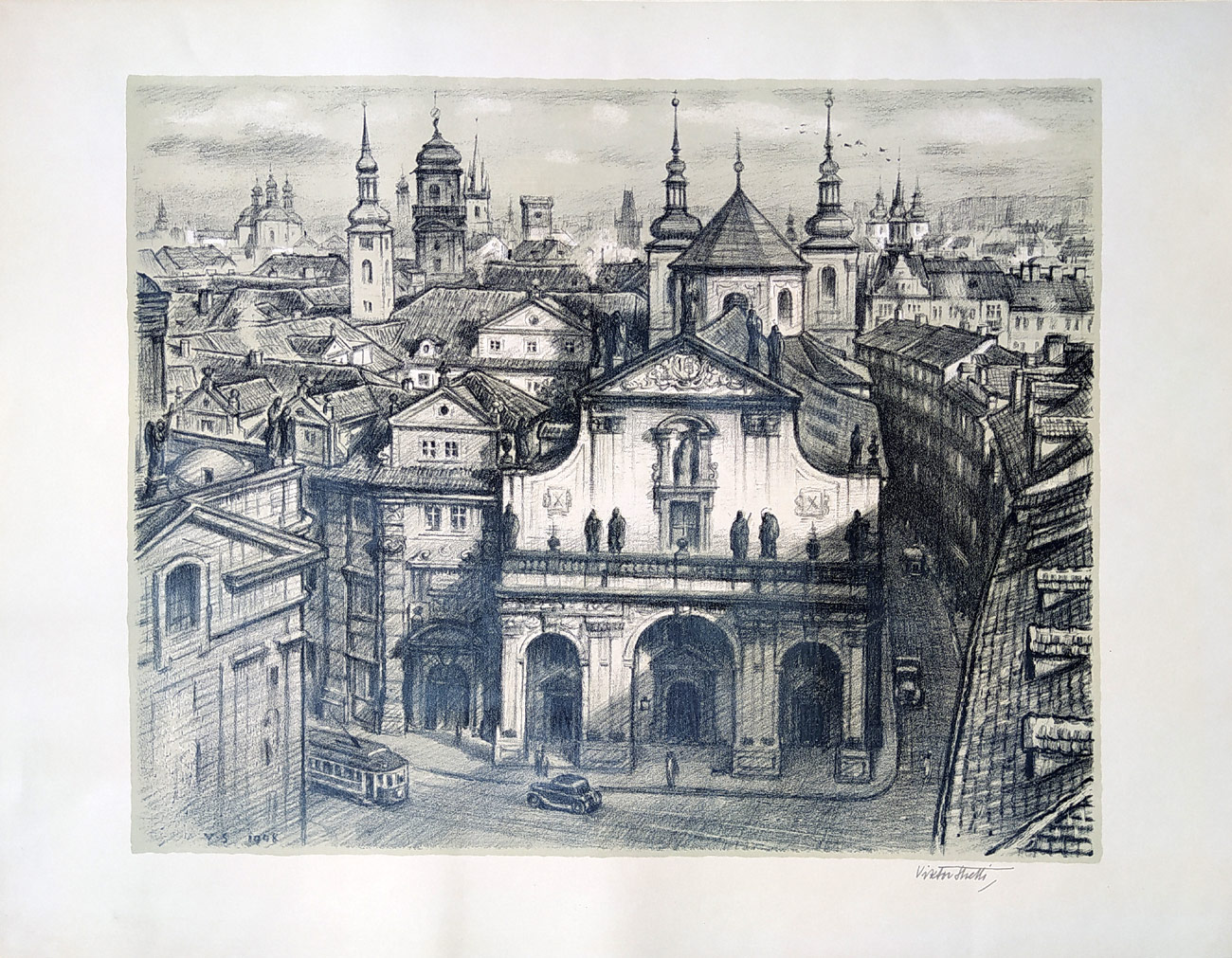 - Stretti Viktor – Praha, Křižovnické náměstí, původní litografie s podtiskem, 1948