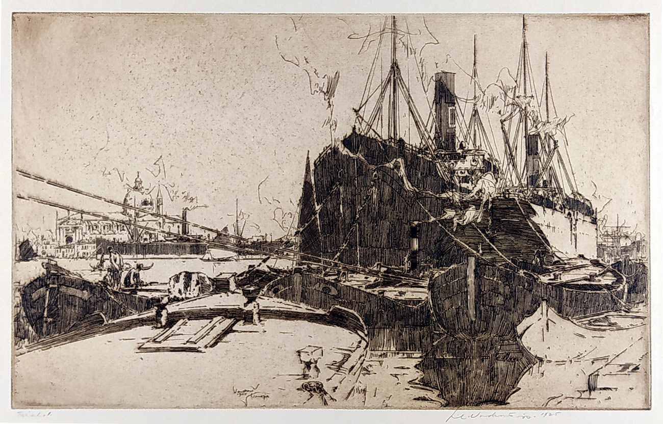 Vondrouš Jan Charles – Přístav v Benátkách, původní lept, 1925