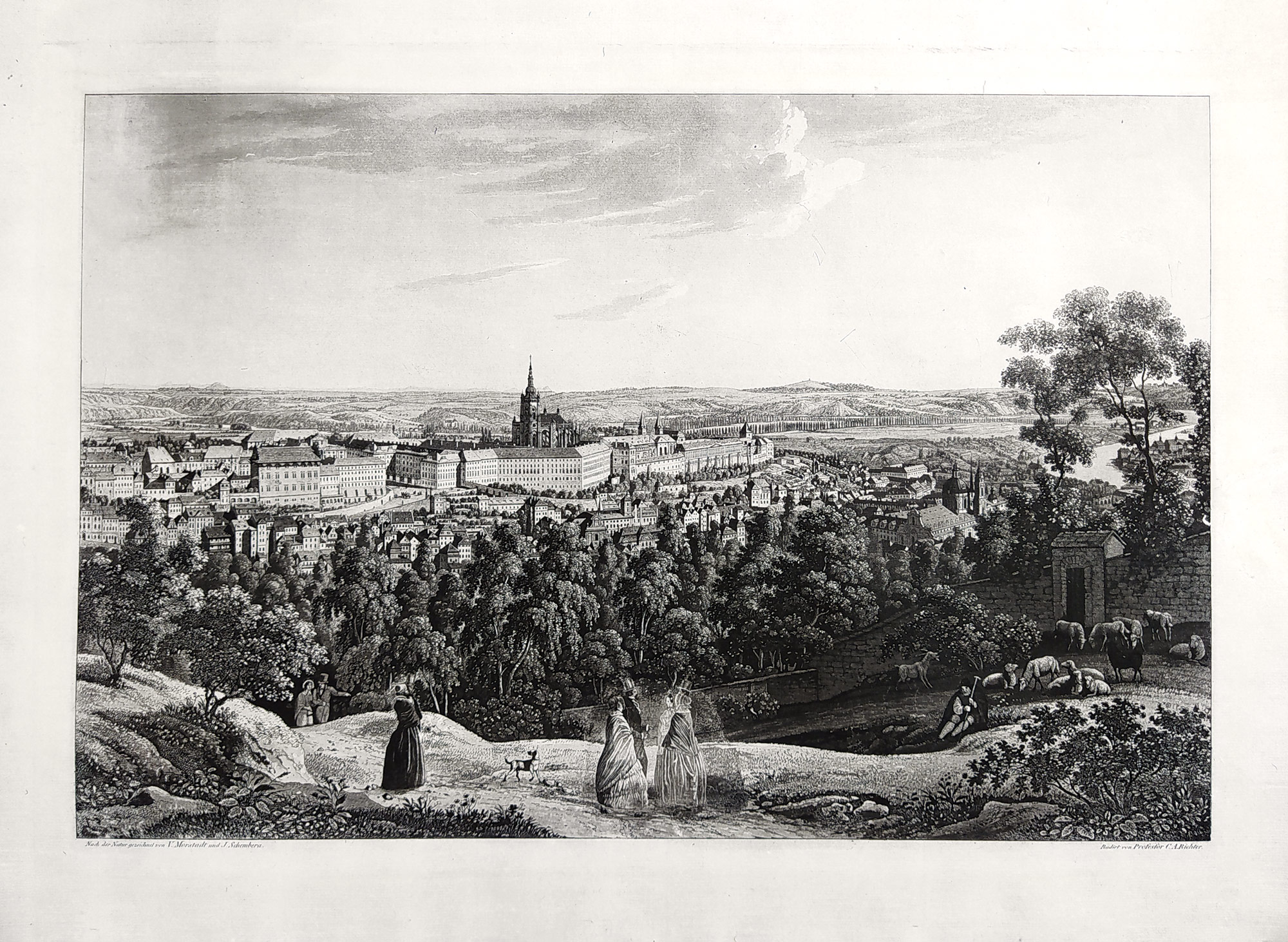Praha – Hradčany od jihozápadu, Vincenc Morstadt, C. A. Richter, lept (1830), pozdější otisk z původní desky