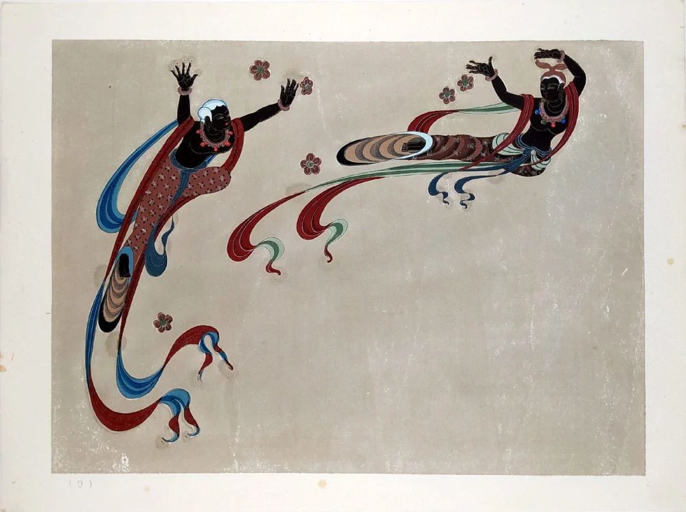Jeskynní malba v Dunhuang / Tun-chuang – 9. deska z I. alba, původní dřevořez, Peking, 1952.