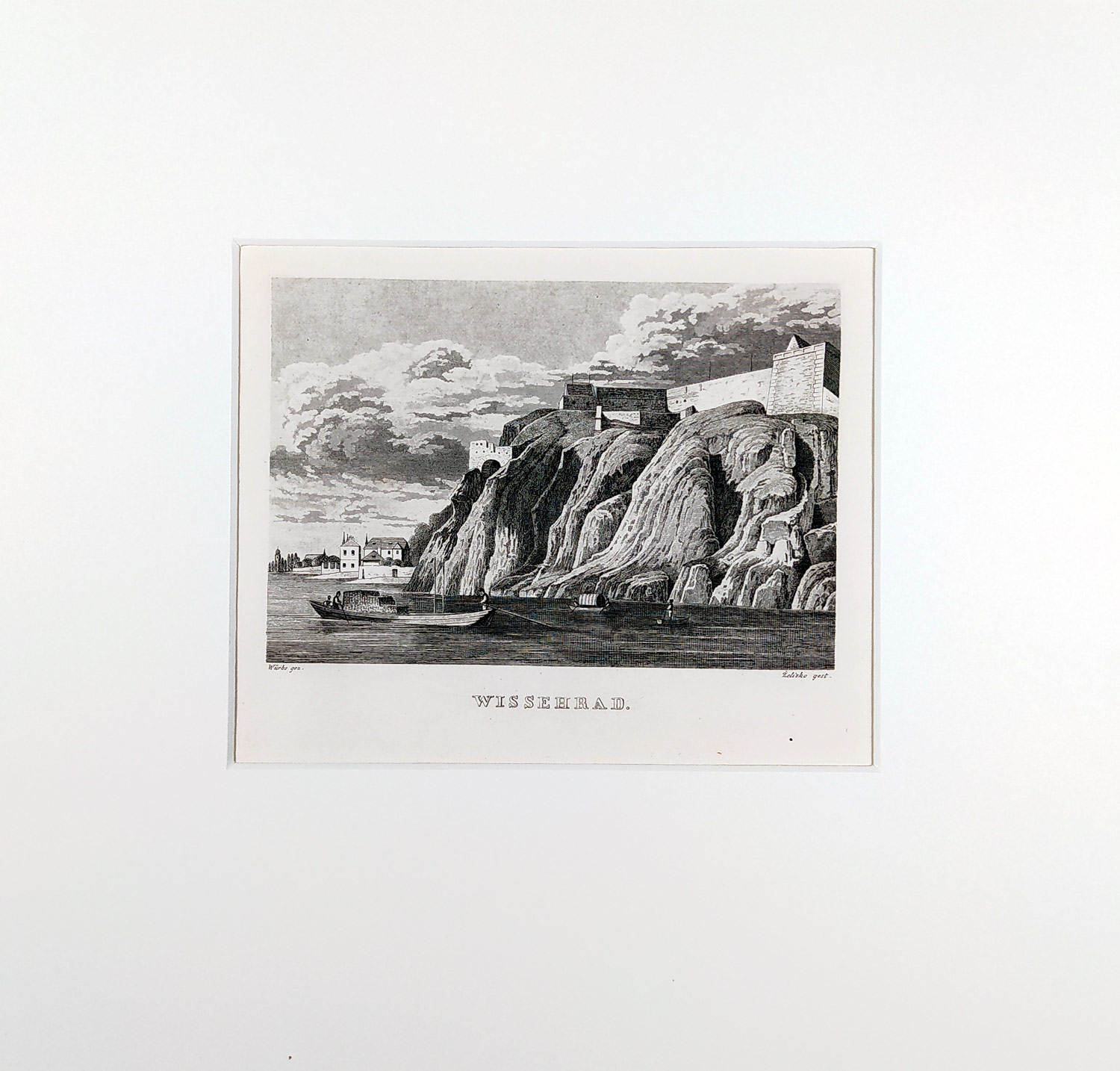 Praha – Vyšehrad, C. Würbs, původní oceloryt, 1836. Podle předlohy C. Würbse vyryl Želísko. Vydáno v Praze roku 1836, Verlag von Gottlieb Haase Söhne.
