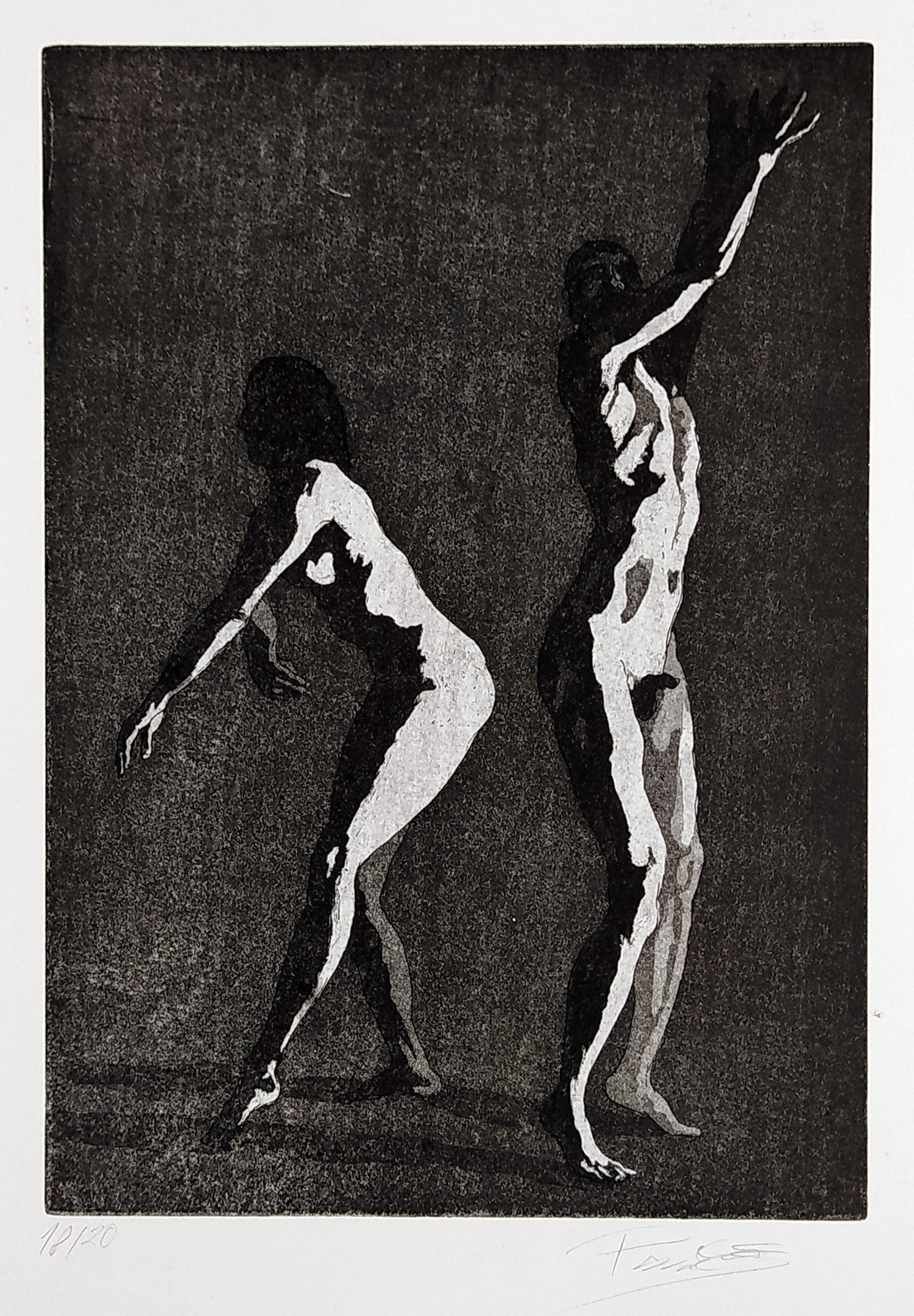 Panáček Adam – Dvojice, čárový lept s akvatintou, 18/20, 2023. Signováno tužkou vpravo dole. Celkový rozměr: 49,8 cm × 32,1 cm.