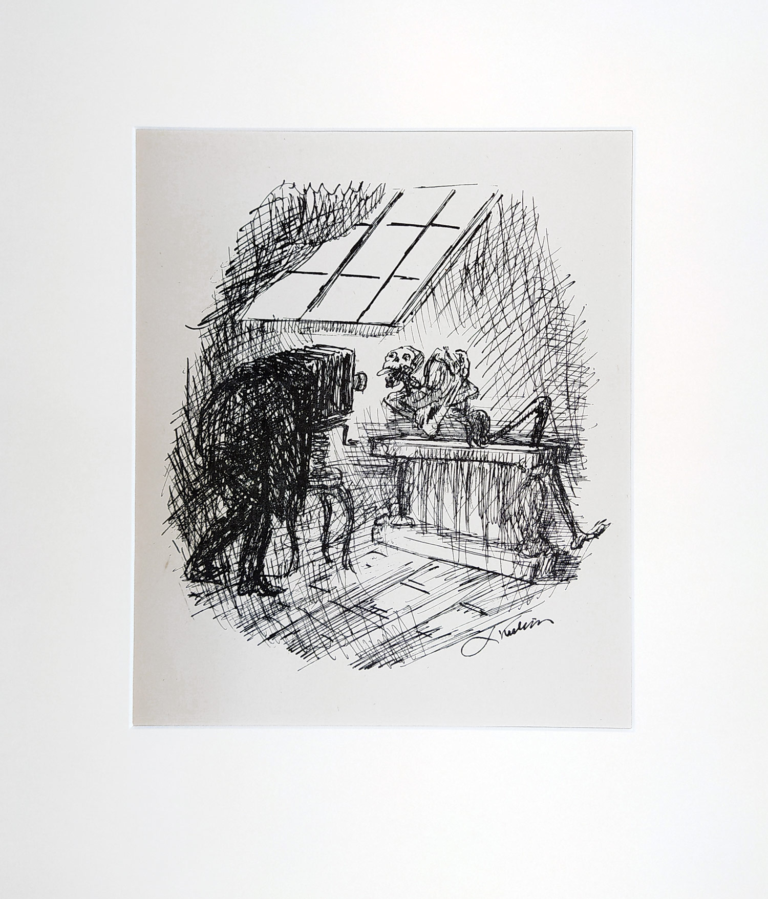 Kubin Alfred – Der Photograph, XX, Ein neuer Totentanz, klasický ofset, 1947 podle kresby z roku 1938. Vydáno ve Vídni roku 1947. Celkový rozměr v paspartě: 45,9 cm × 39,0 cm.