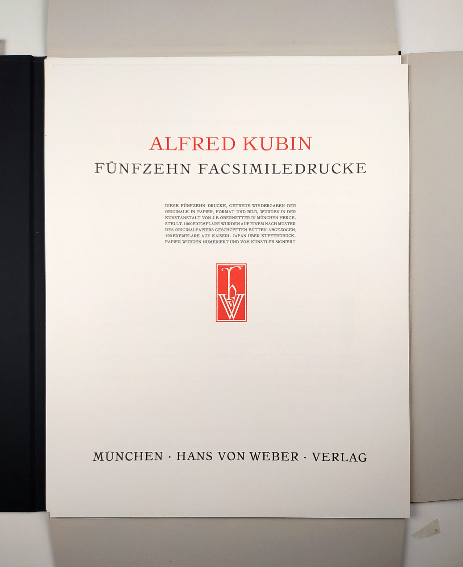 Kubin Alfred – Hans von Weber Mappe (1903), faksimile, 1989. Album s patnácti faksimilemi tónovaných perokreseb, Vydal Spangenberg, Mnichov 1989, č. 642 z celkového nákladu 800 číslovaných výtisků, formát listu cca 45 x 35,5 cm, poloplátěná složka. ISBN 3-89409-036-7.