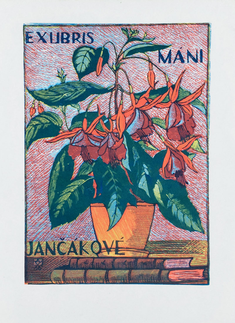 - Macková Anna – Ex libris Máni Jančákové, barevný dřevoryt, 1936