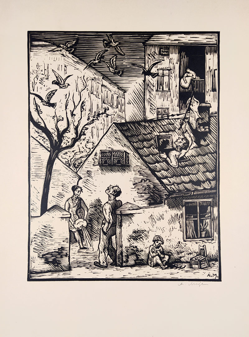 - Majer Antonín – Holubář, dřevoryt, ca 1925