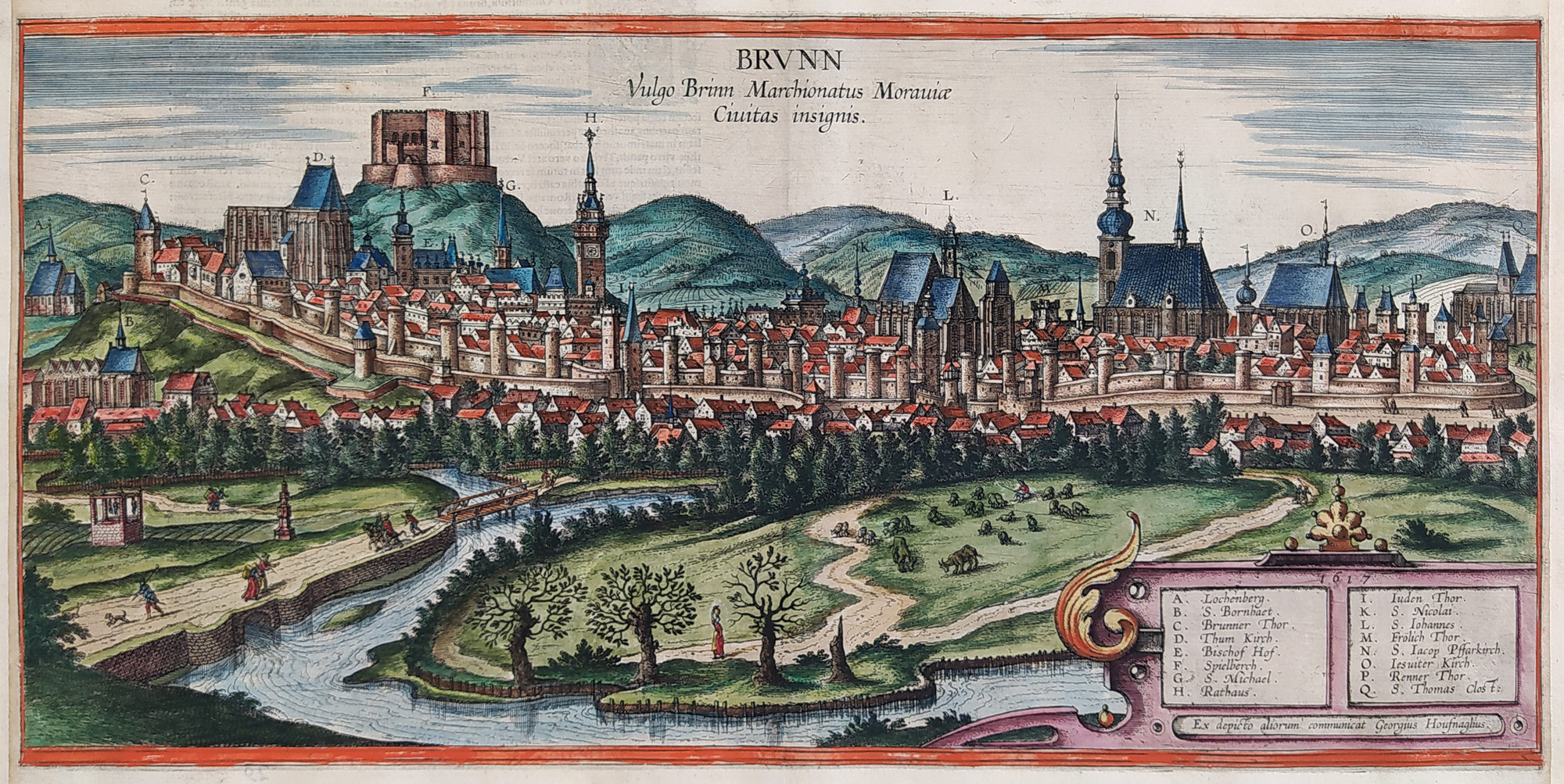 - Brno – Georg Braun, Franz Hogenberg, staře kolorovaný původní mědiryt, 1617