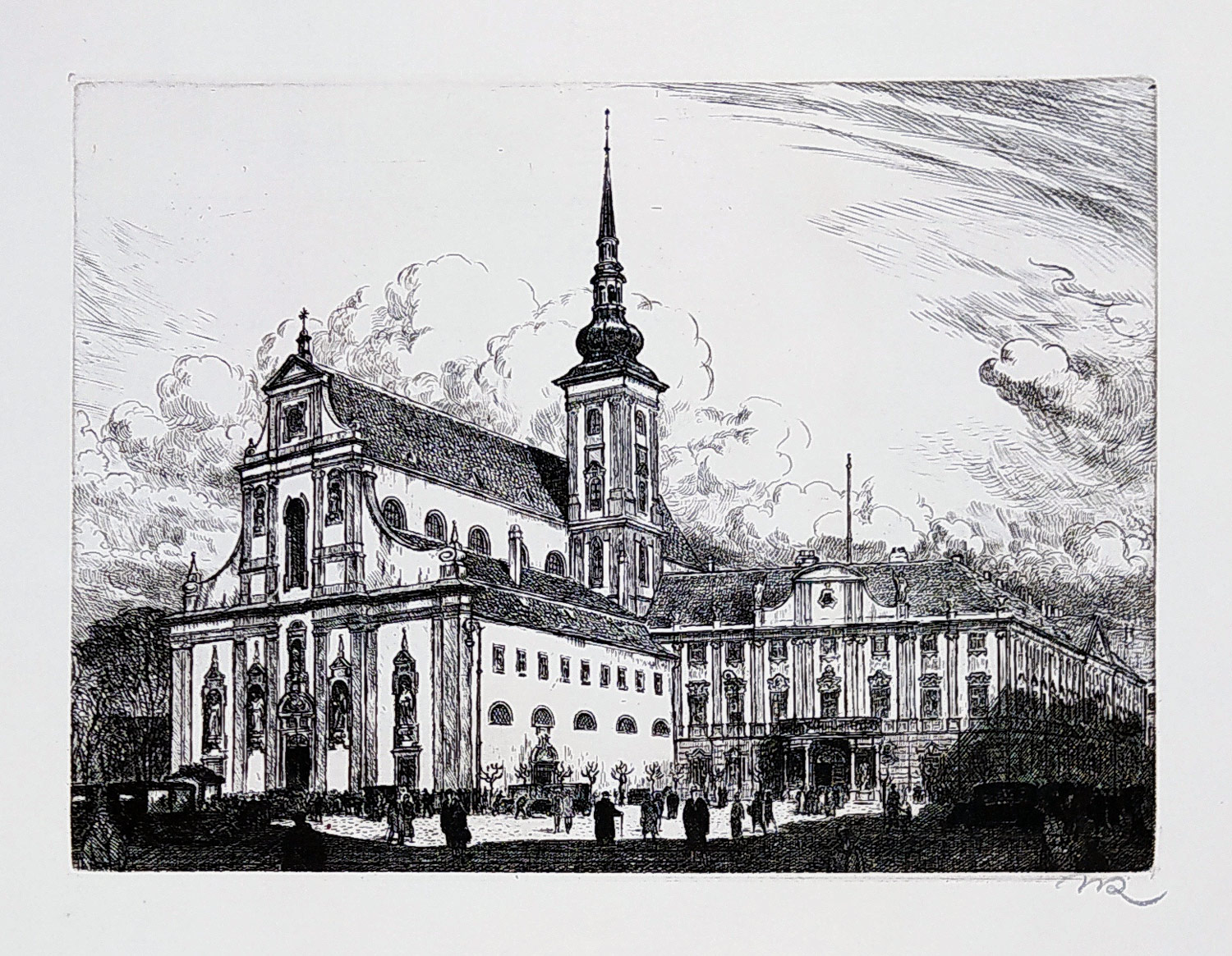 Vik Karel – Brno, Kostel sv. Tomáše s bývalým místodržitelstvím, původní lept, 1928