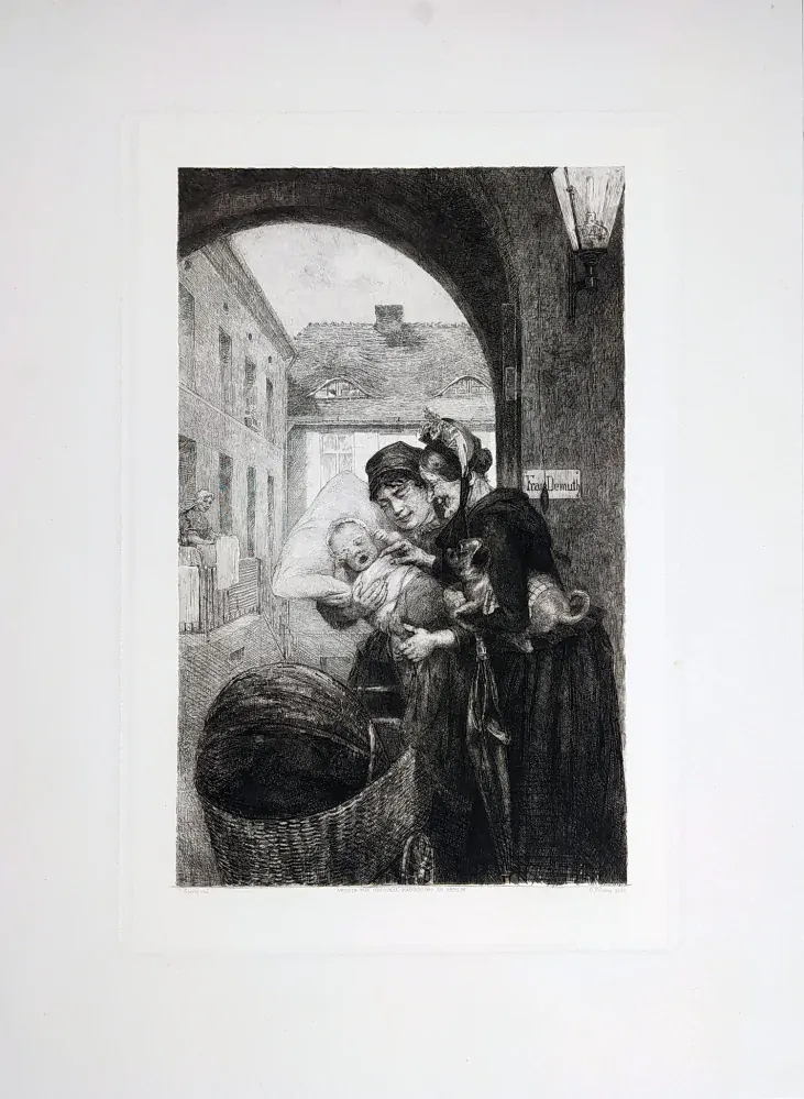 Sterry Carl – Frau Demuth (Lenchen Demuth), původní lept, nedatováno. Verein für Original Radierung zu Berlin, O. Felsing gedr. Celkový rozměr: 45,0 cm × 33,0 cm.