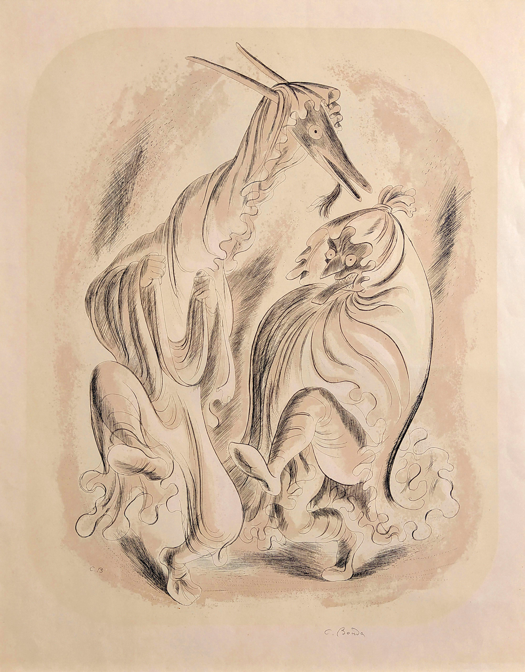 Bouda Cyril – Maškary, barevná litografie, 1943
