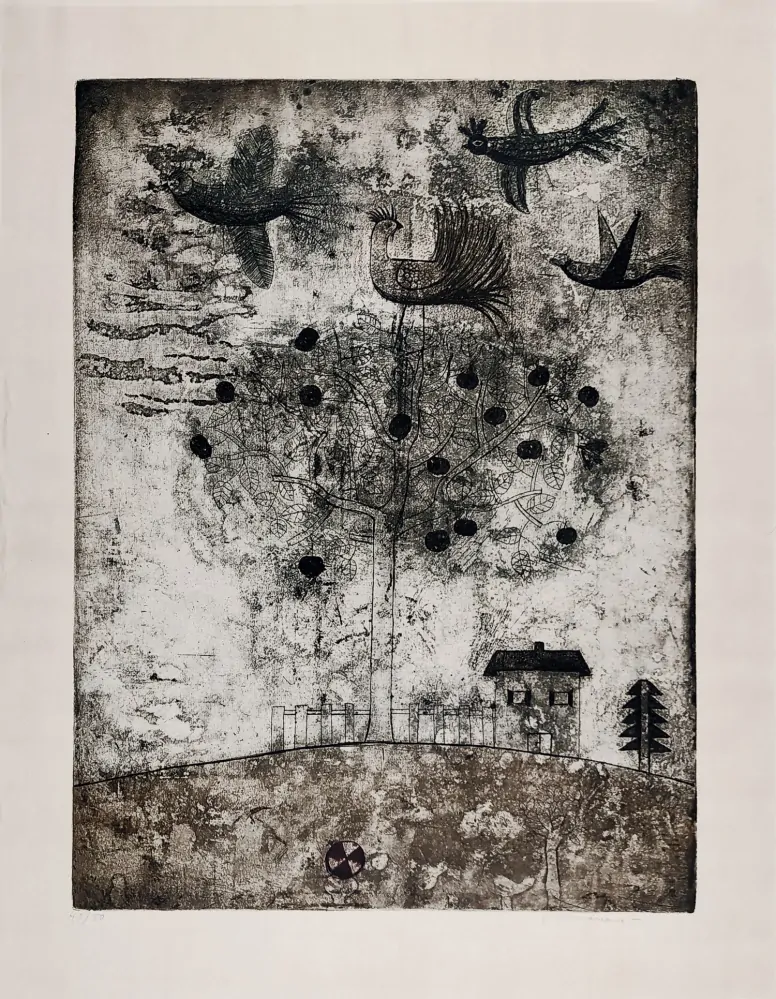 Tomanová Emilie – Zahrada, rozměrná grafika, barevný lept, nedatovánoProdáno4 600 Kč/ ks