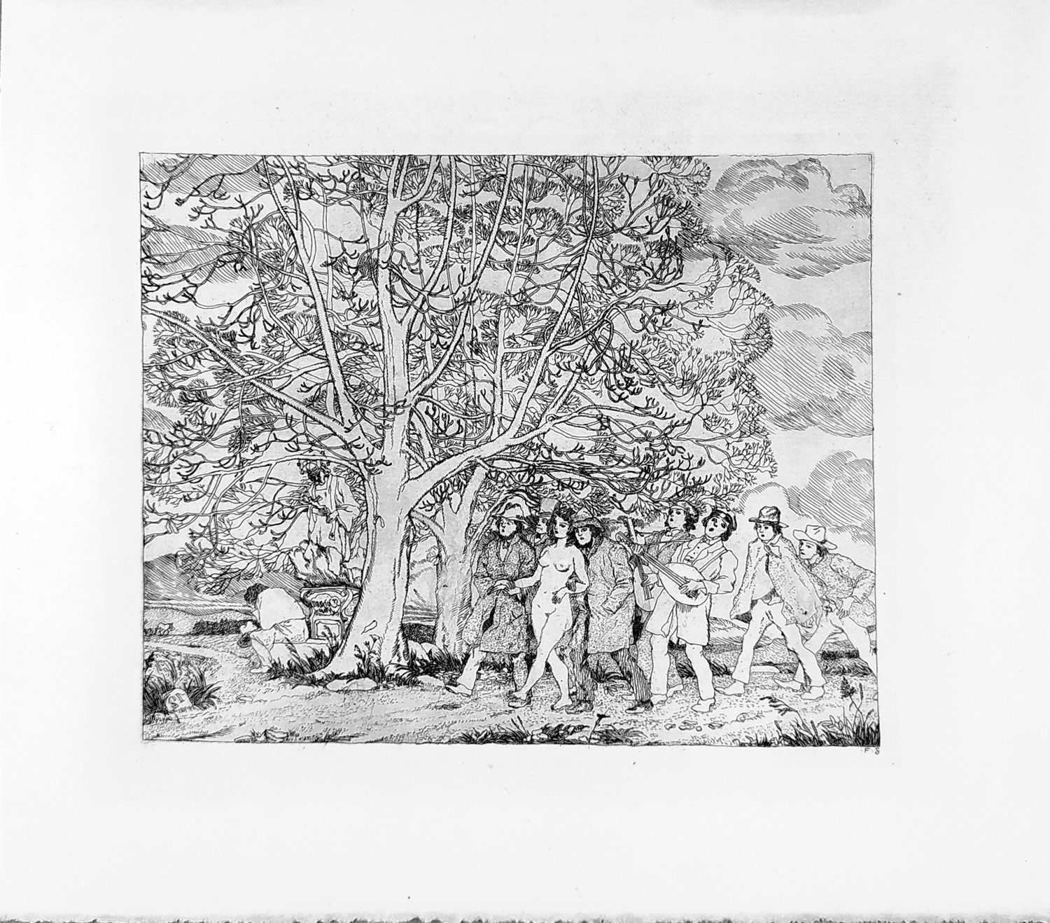 Staeger Ferdinand – Zpěváci, původní lept, ca 1920. Signováno typograficky vpravo dole.
