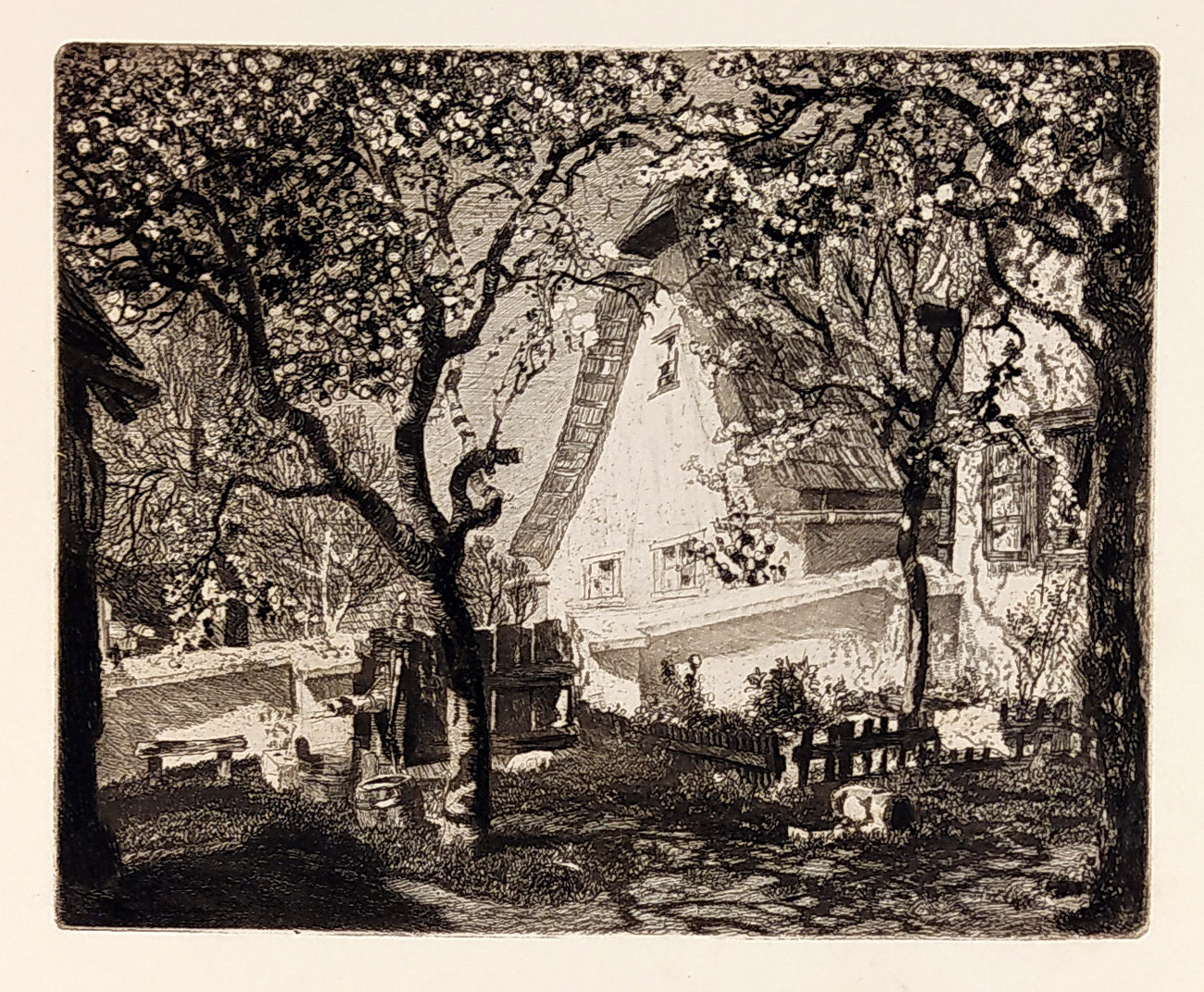 Silberbauer Fritz – Garten im Sonnenschein, lept, 1913. Vydáno ve Vídni, 1913: Gesellschaft für vervielfältigende Kunst. Celkový rozměr 40 cm × 29,5 cm.