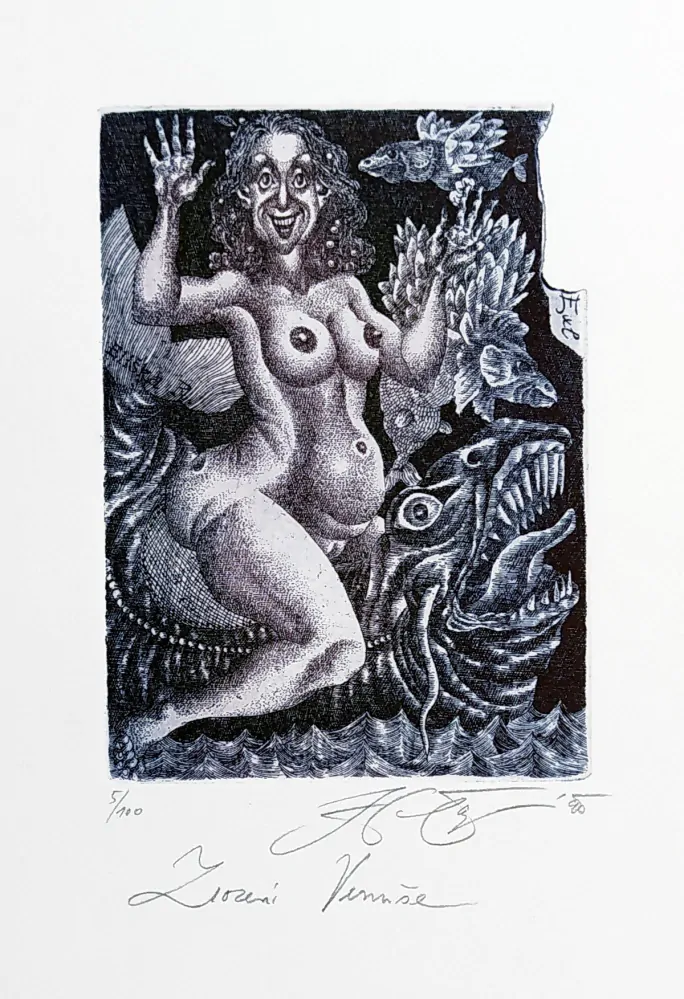 - Čápová Hana – Zrození Venuše, Ex libris, barevný lept, číslováno 5/100, 1990