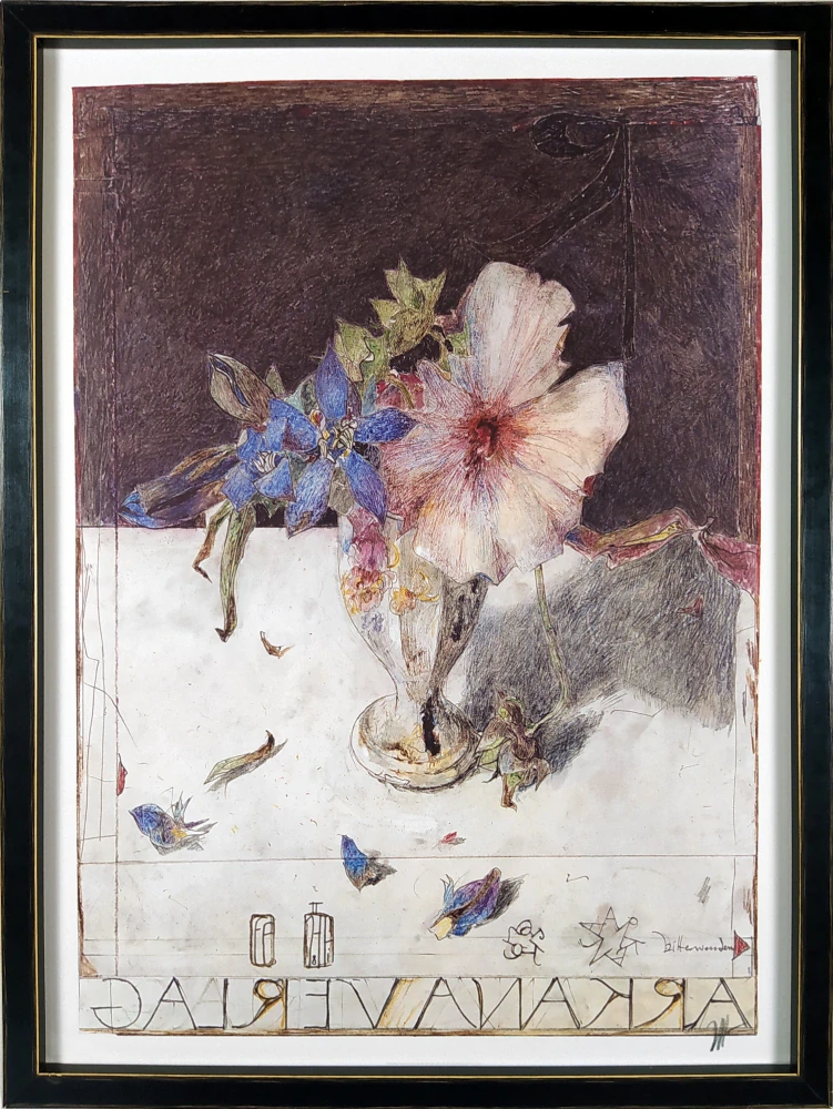 Janssen Horst – Arkana, tužkou signovaný ofset, 1981. Plakát pro nakladatelství Arkana v Göttingenu. Celkový rozměr v rámu: 62,5 cm × 47,0 cm.