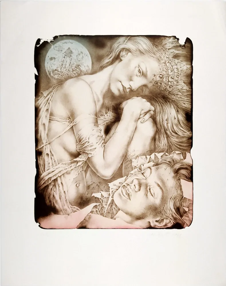 Krejčí Jan – Snění, barevná litografie, autorský tisk, 1988. Signováno tužkou vpravo dole s datací. Celkový rozměr: 47,3 cm × 38,0 cm.