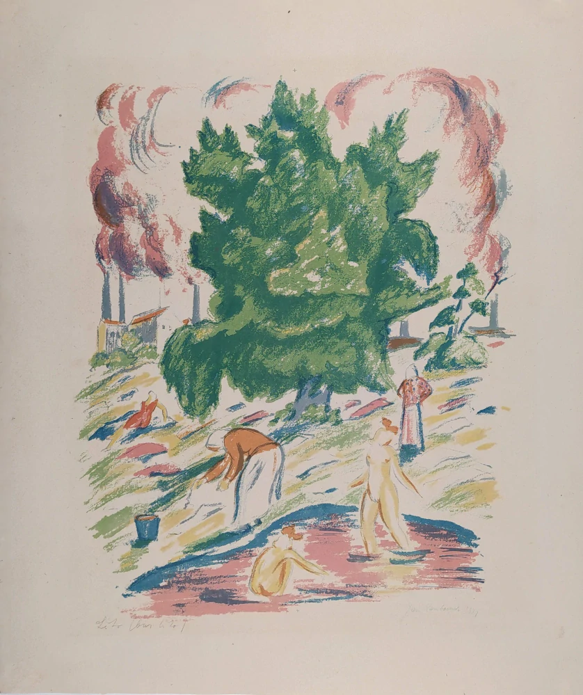 Rambousek Jan – Léto, barevná litografie s podtiskem , 1921. Signováno tužkou vpravo dole s datací. Celkový rozměr: 50,2 cm × 41,8 cm.