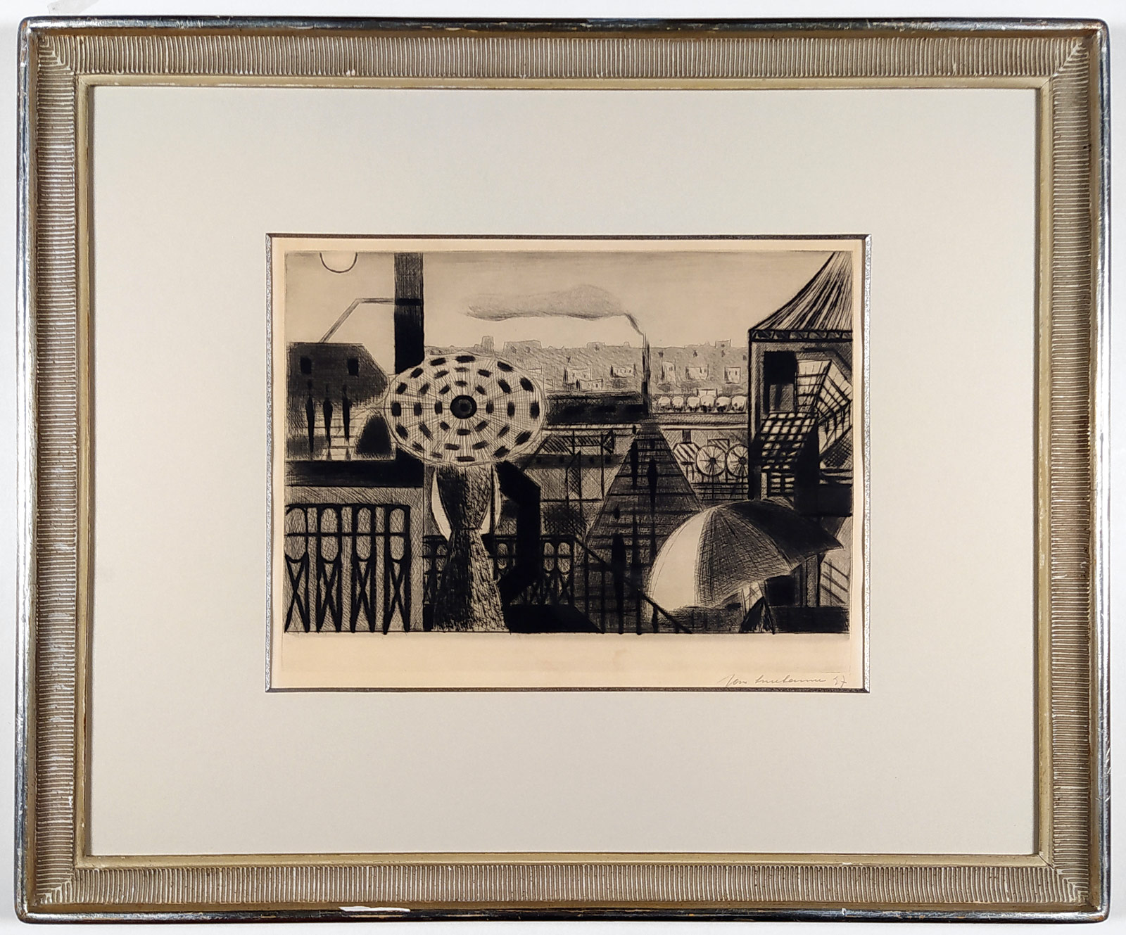 Smetana Jan – Paříž, suchá jehla, 1947. Signováno tužkou vpravo dole s datací.