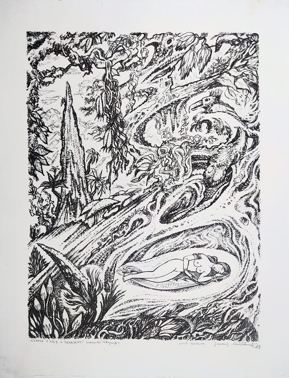 Skřivánek Jaromír – Legenda o Nale a Damajantí, autorská litografie, 1978.