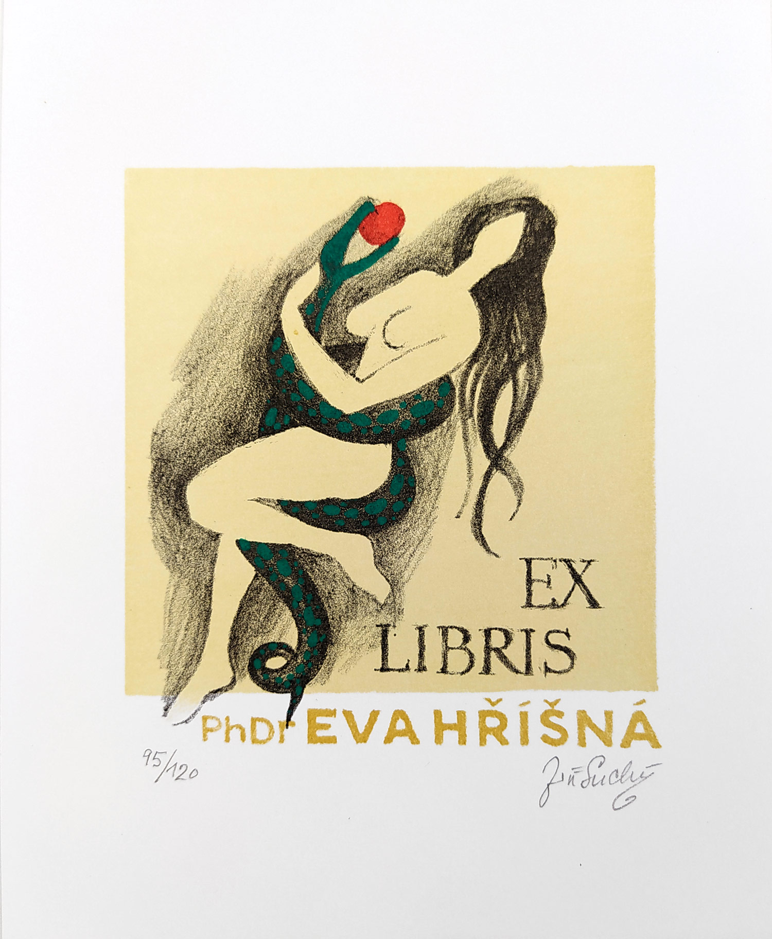 Suchý Jiří – Ex libris PhDr. Eva Hříšná, litografie s barevným podtiskem, č. 95/120, nedatovánoProdáno1 800 Kč/ ks