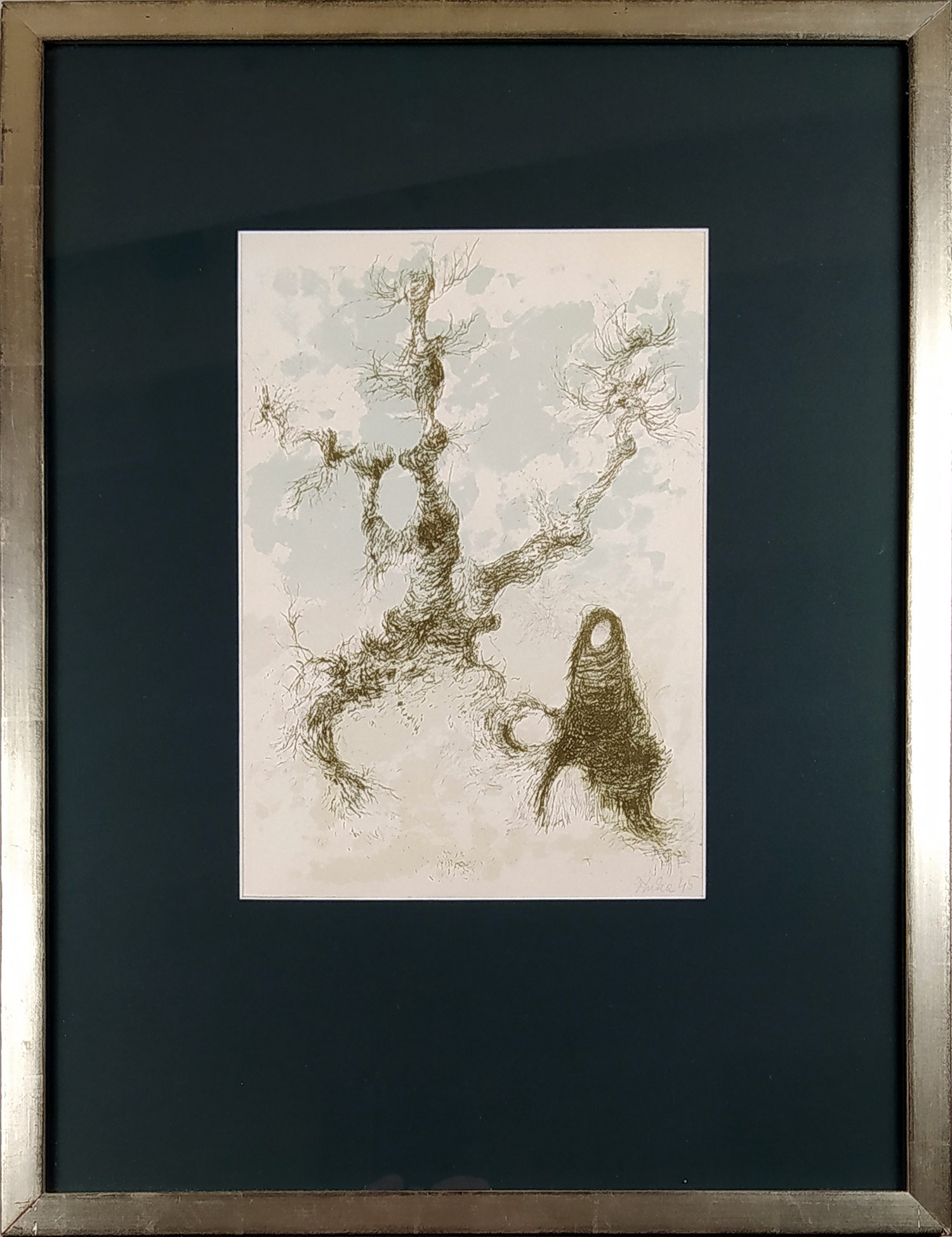 Trnka, Jiří – Zima, původní barevná litografie, 1945. Celkový rozměr v paspartě a rámu: 54,0 cm × 40,7 cm.