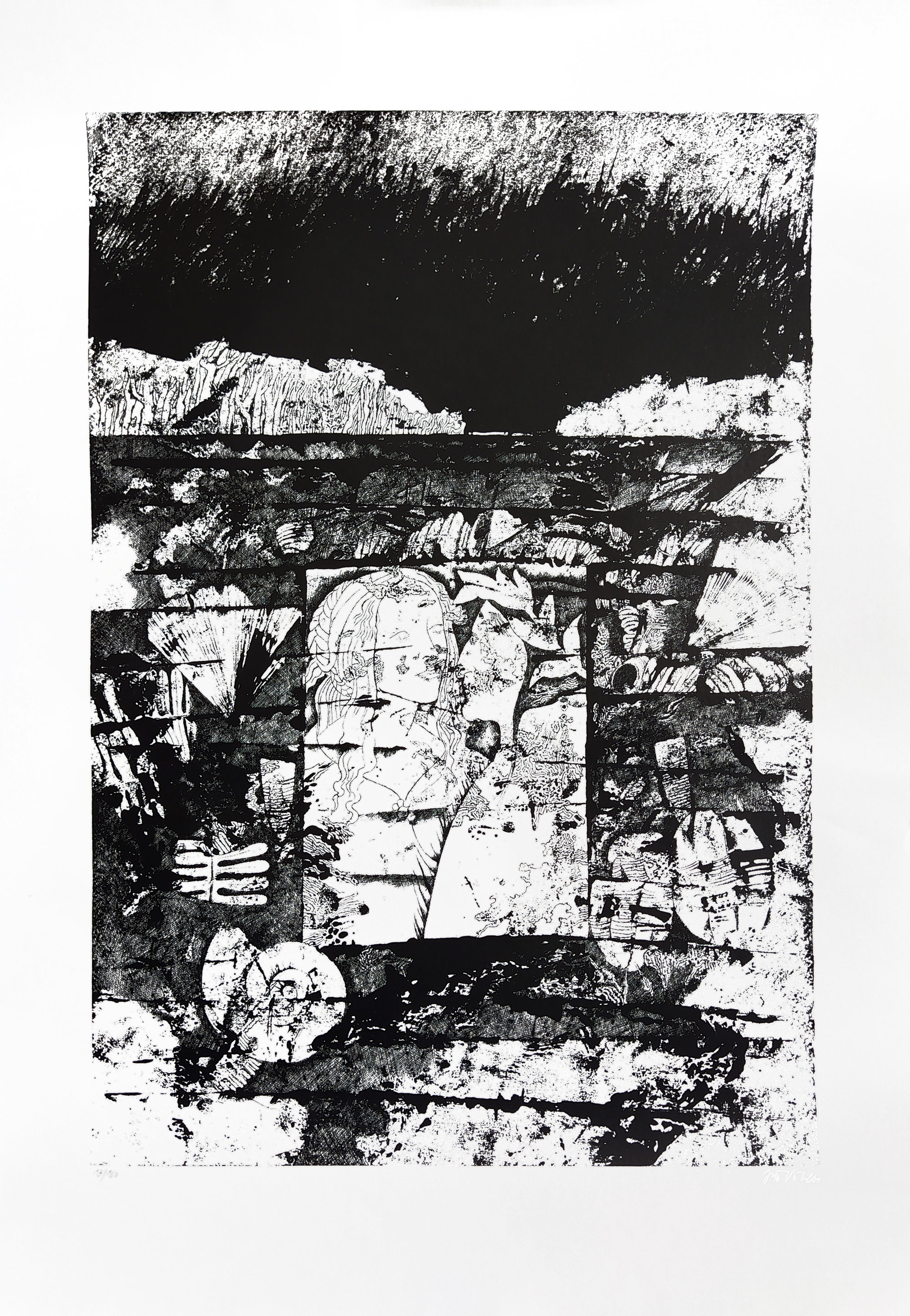 Voves Jiří – Bez názvu, serigrafie, číslováno 13/100, nedatováno. Signováno tužkou vpravo dole. Celkový rozměr: 89,9 cm × 65,1 cm.