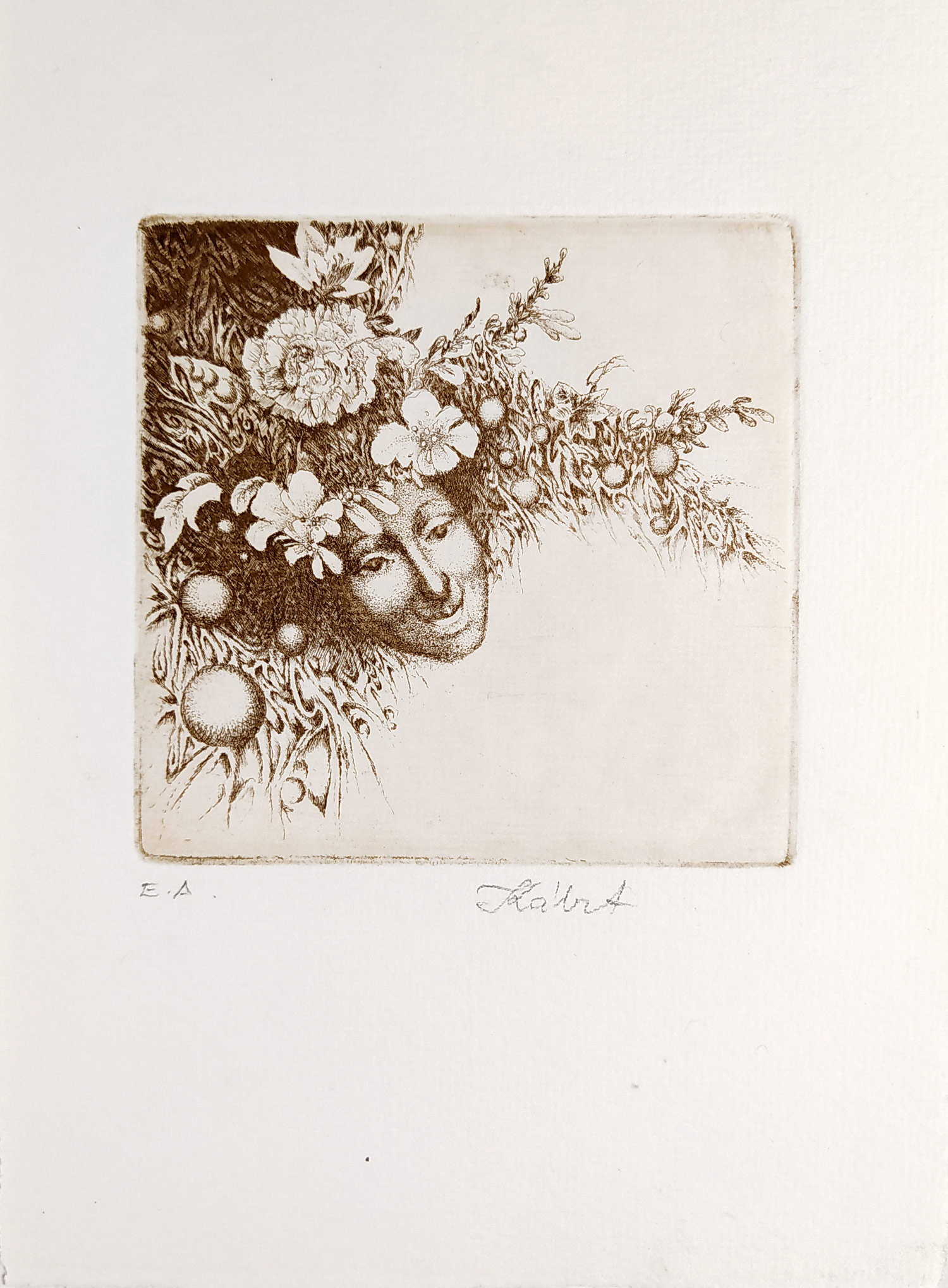 - Kábrt Josef – Dívka v květu, zrnkový lept s barevným podtiskem, autorský tisk, nedatováno