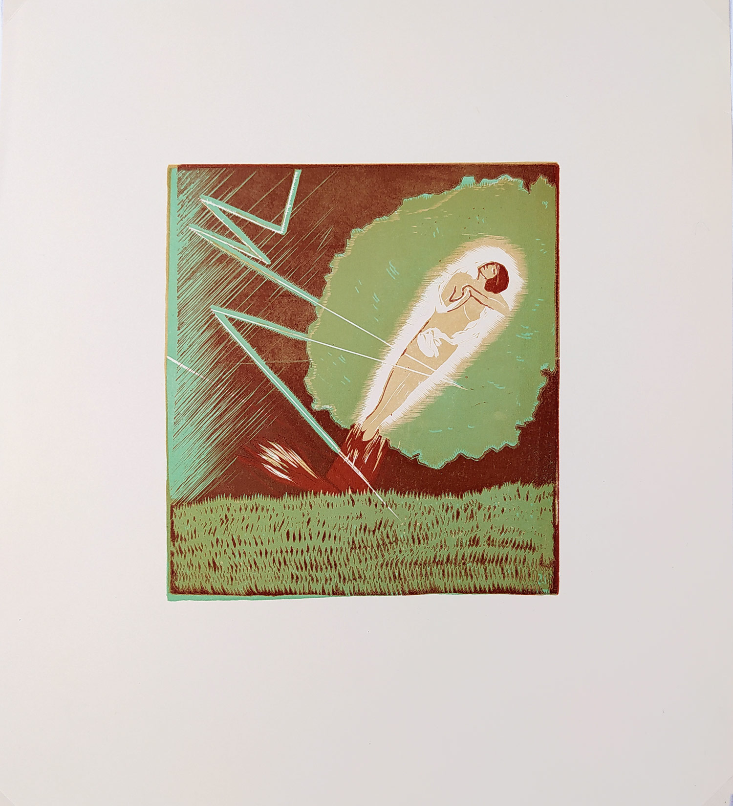 - Váchal Josef – Strom zasažený bleskem, barevný dřevoryt, 1912