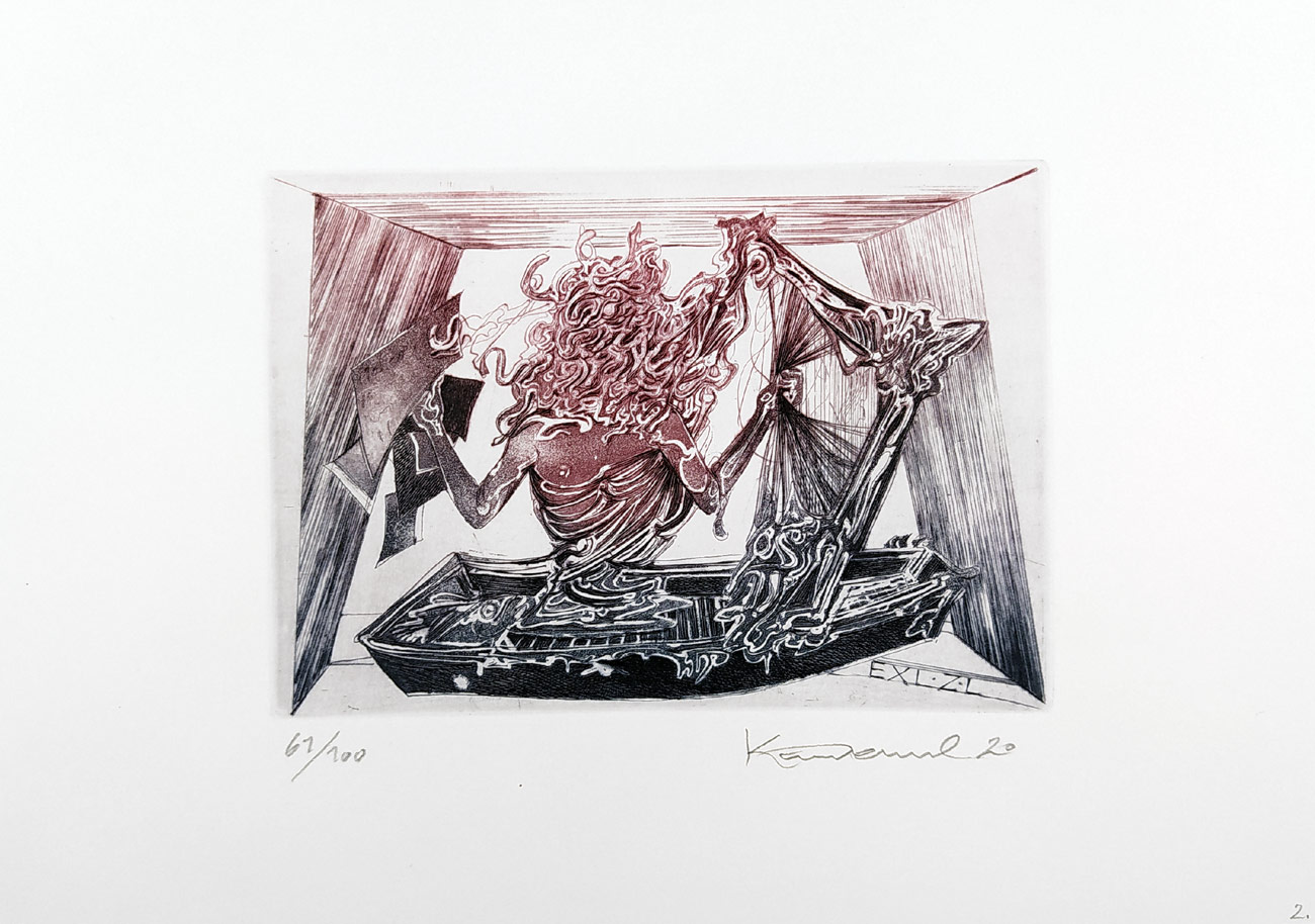 - Demel Karel – Ex Libris Z. L., z cyklu Zpěvy Maldororovy, lept a suchá jehla, 2020