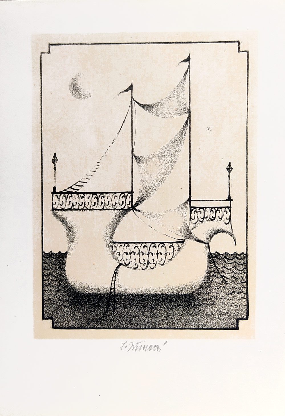 Jiřincová Ludmila – Spící loď, původní litografie s podtiskem, nedatovánoProdáno2 400 Kč/ ks