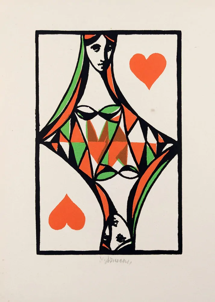 - Jiřincová Ludmila – Srdcová dáma, původní barevný linoryt, 1964