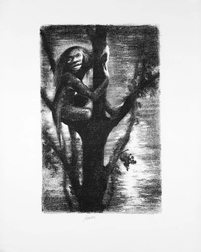 Jiřincová Ludmila – Vodník, původní litografie, 1951. Ze souboru Kytice. Celkový rozměr: 43,0 cm × 34,2 cm.