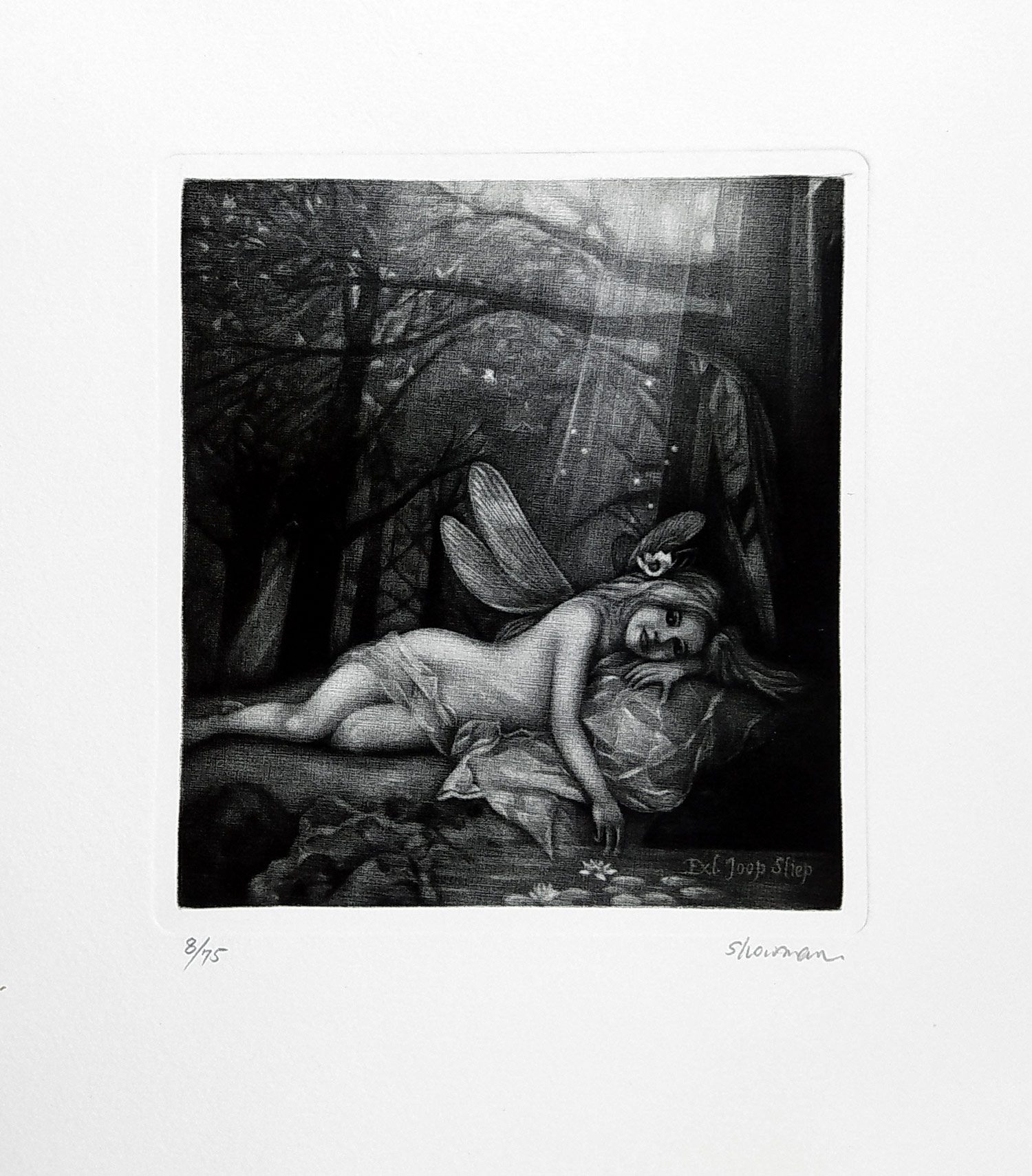 - Zhuang Man – The nymph / Víla, Ex libris Joop Sliep, původní mezzotinta, nedatováno